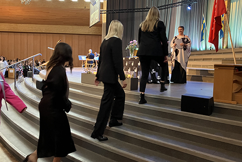 På grund av pandemin har avslutningshögtiderna hållits digitalt de senaste två åren, men nu kunde studenterna vara på plats vilket naturligtvis gav mer feststämning. Avslutningshögtiden för HHJ:s studenter hölls i Pingstkyrkan medan ceremonin för HLK:s studenter hölls i JU-aulan på HLK. (Se bildspel nedan)