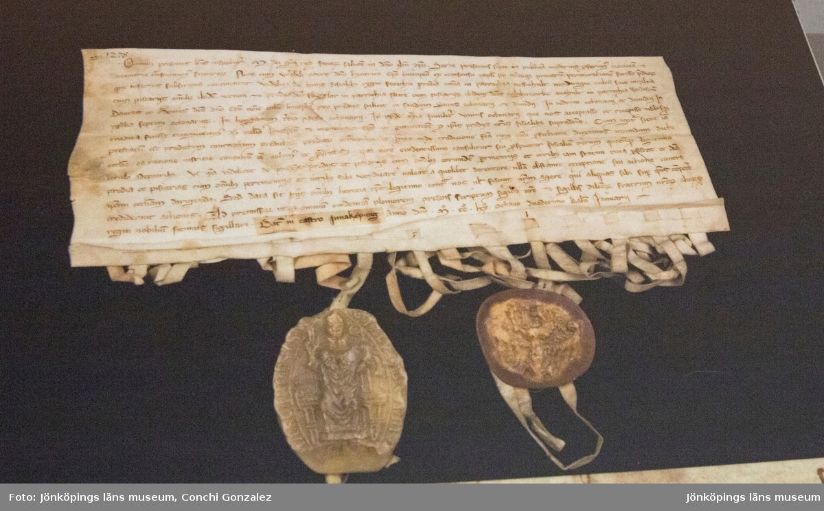 Jönköpings privilegiebrev från 1284. Foto: Jönköpings läns museum, Conchi Gonzalez